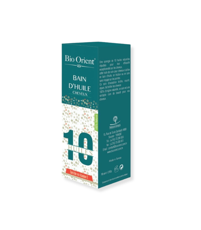 Bio Orient Bain d’Huile Cheveux 90 ml est un soin capillaire complet à base de 10 huiles naturelles, conçu pour nourrir, renforcer et sublimer les cheveux dès la racine jusqu’aux pointes.